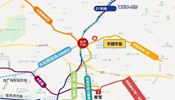 楼盘旁有轨电车长岭居小学站仅约500米,通过有轨电车1号线、地铁21号线,可快速连通科学城与天河。