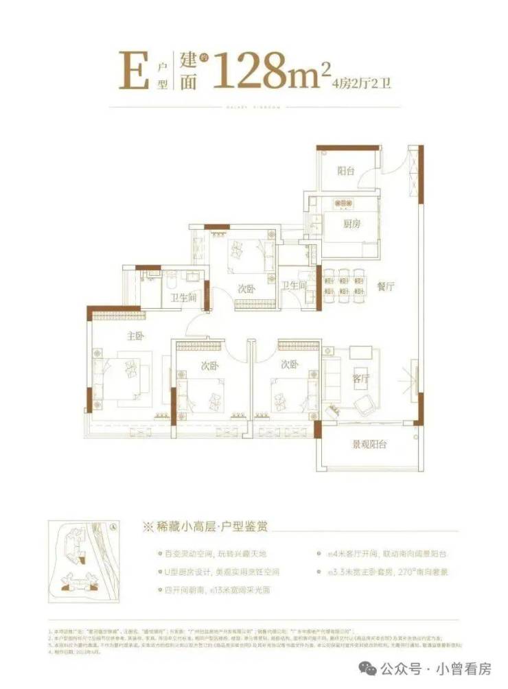 128㎡四房:独立入户花园设计,约 16㎡超宽阳台,主卧套房带飘窗,兼顾改善需求。