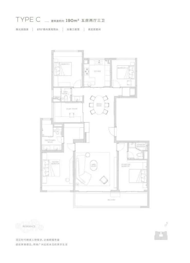 【190㎡双阳台户型】观景双阳台-高定双套间-私家电梯厅-双洄游动线