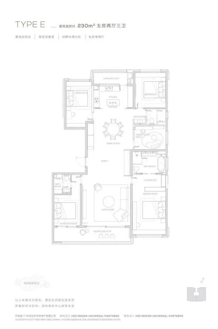 【230㎡户型】观景双阳台-高定双套间-私家电梯厅-双洄游动线