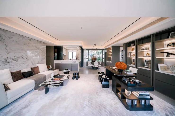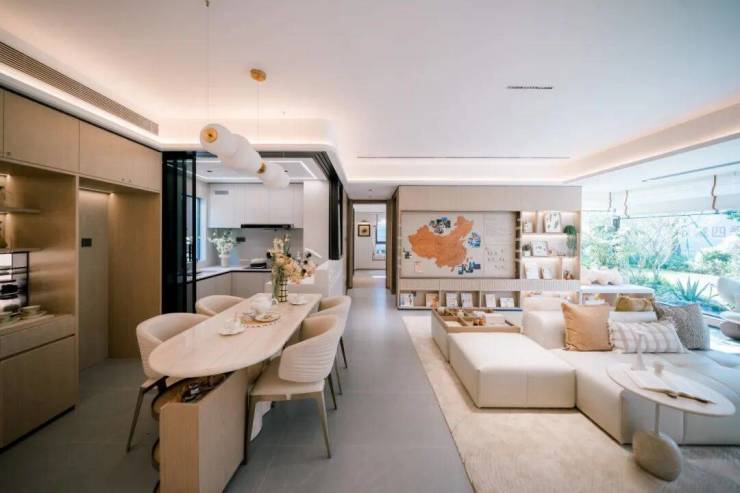 LDKG一体化餐客厅,有效拓展空间使用功能。约108m²户型拥约64m²全景阔厅,尺度震撼全城。精心雕琢大采光面设计,做到四开间乃至五开间朝南。