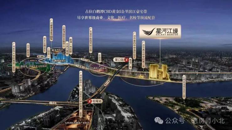 荔湾星河江缦位于广州市荔湾区白鹅潭商务区核心,是星河湾集团在白鹅潭开发的 “白鹅潭封面、一线江景、江缦系藏品、顶豪标杆” 项目。以 “湾区西岸、三江口封面、江缦藏品、传世大宅” 为核心价值,是星河湾最高端的“江缦”系作品,定位为定义广州西翼滨江顶豪价值的全球藏品。