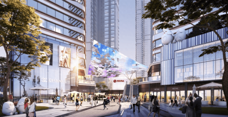 除项目自身1.8万㎡的商业配套之外,项目北面还有 20 万㎡大型综合体。