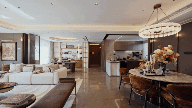 市面上很多120㎡甚至130㎡的户型,都做不到这个级别的公共空间尺度。