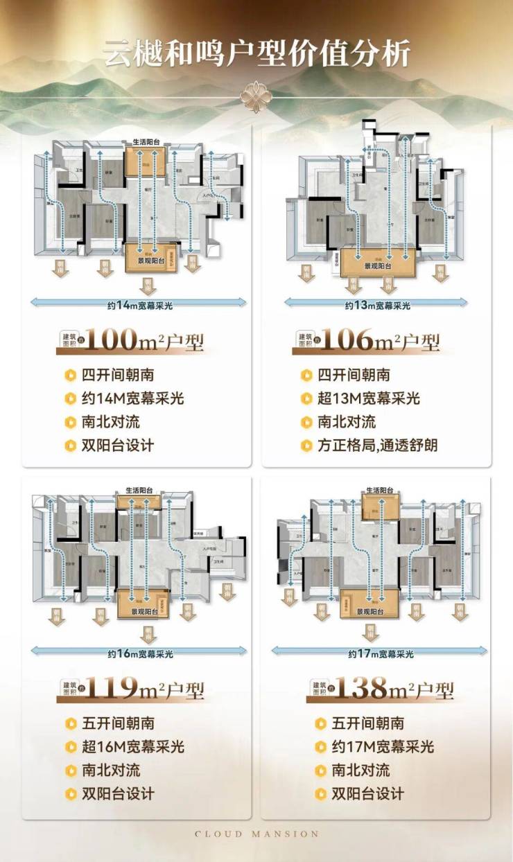 第三是产品力承袭并优化,2号楼加推的是建面约100-138㎡的新品,延续了超100%使用率、LDKB一体化、全南向单边位等核心优势。