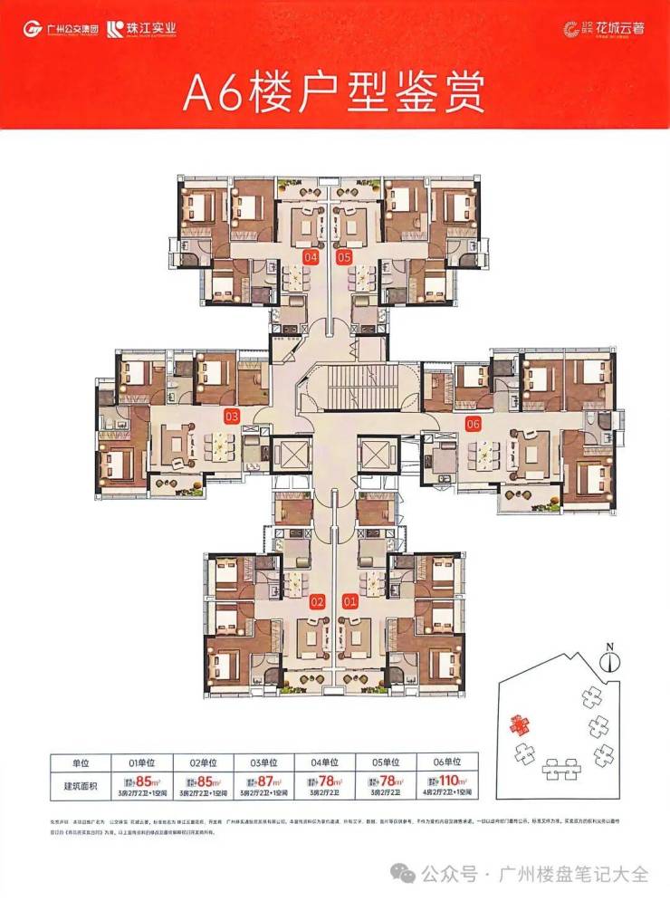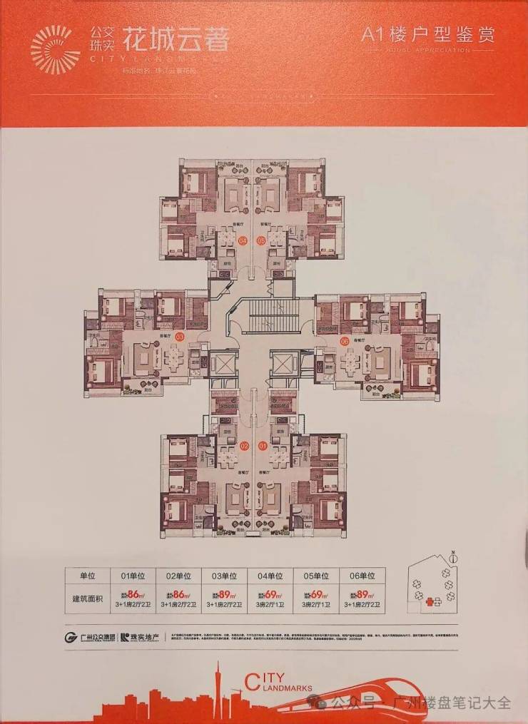 卖点五、【最极致】户型!约78-110㎡双地铁三至五房,实用率板块最高!性价比最高。A 户型建面约78 ㎡舒适 大3房,多送一间房;B户型建面约 85 ㎡带主套 3+1房,白云只此一家;C 户型建面约 87 ㎡大横厅 3+1 房,大家庭一步到位;D户型建面约 110 ㎡奢阔横厅 4+1房,阔境舒居享受。