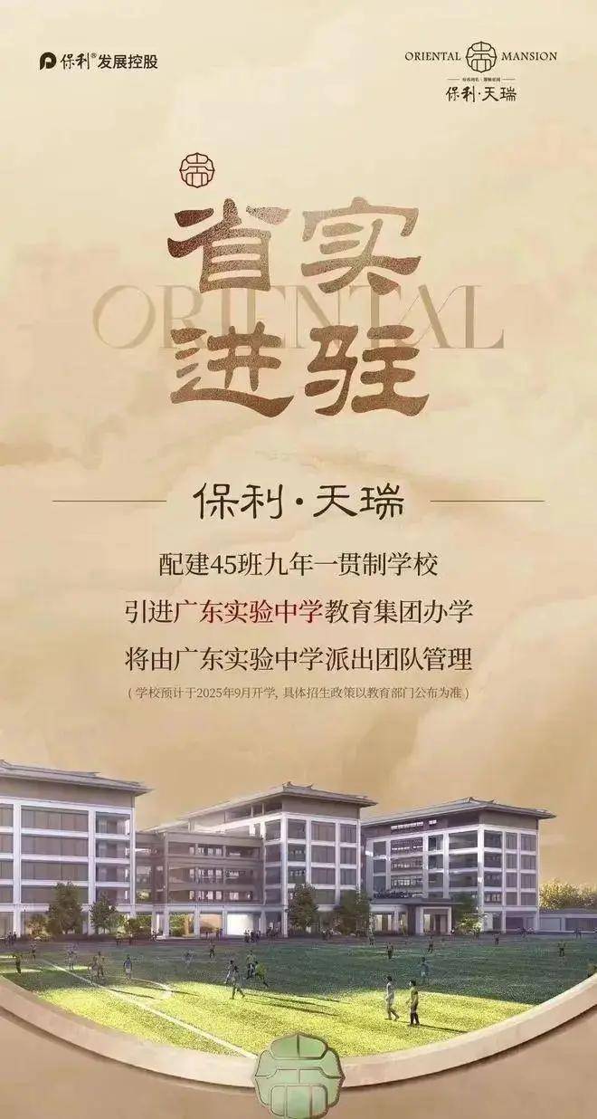 项目自建18班幼儿园和45班九年制中小学、目前该校已官宣引入广东实验中学教育集团办学,由广东实验中学派出团队管理。周边有211高校荟萃、多所省一级资源