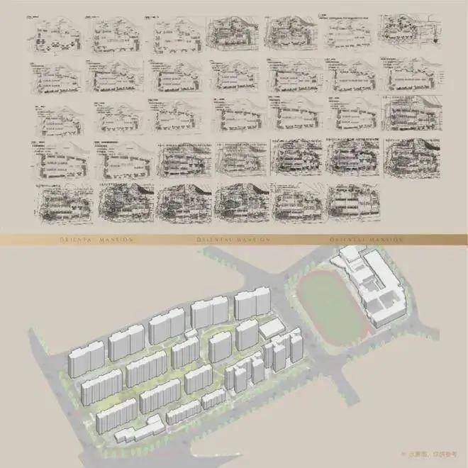 4排板式小高层全南向排列,每排小高层楼间距达到40-50米,