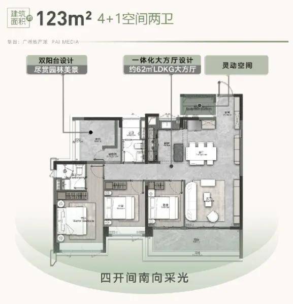 其中 123㎡户型南向可眺望海珠国家湿地公园,竖厅设计搭配 IMAX 景观阳台,客厅面宽 4.2 米,主卧带 270° 环幕飘窗,总价约 850 万起,很适合在琶洲、珠江新城上班的年轻家庭。
