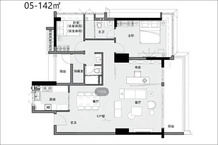 “奢阔尺度” 5米客厅开间,8米南向阳台,双主套双阳台,主卧套房尊享独立衣帽间+卫浴间