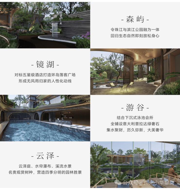 ❀层层降噪,沉浸心灵的惬意归途蓝调国际大师主笔,“溯源”广州在地文化,以珠江为源头,溯流而上,从外到内匠心打造:森屿、镜湖、游谷、云泽“四重景观礼序”,塑造优雅归家动线。