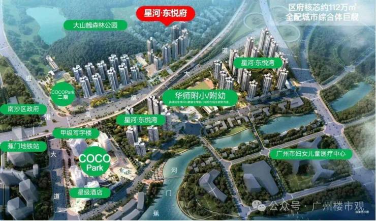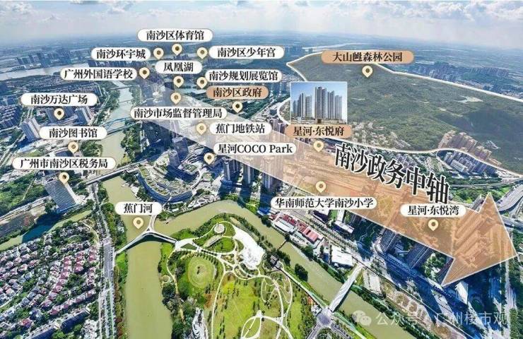 星河 COCO Park:项目毗邻 9.7 万㎡的星河 COCO Park,该商业综合体已正式开业,内含超过 200 个品牌店铺,其中包括 60 多个南沙首店,涵盖了精品超市、横店影城、西西弗书店、POWAVE 健身等多种高端业态,能够满足居民购物、娱乐、亲子、休闲等多样化的消费需求。