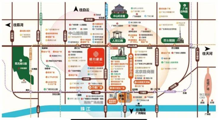 项目处于越秀区北京路商圈、中山六商圈、海珠广场批发商圈交汇处,毗邻广州地铁一号线公园前站A出口,名副其实的广州年度最强区位公寓新品。