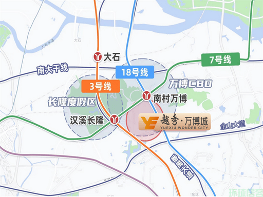交通:3/7/18 号线三地铁汇聚,步行约 10-15 分钟达南村万博站,3 站琶洲、4 站珠江新城;紧邻汉溪大道、番禺大道,自驾畅达全城。