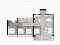 142-186㎡奢阔四房:墅级尺度,270° 环幕视野;双套间设计,私密性强;超 100% 得房率(最高约 120%),改善终极之选。