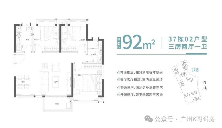 此次广地花园·观灏,面积段80-107悦景三房,多面采景,三面望水,通透采光,充分利用户型的每一寸肌理,以有限的生活空间焕发更多生活灵感,打造全方位人性化居所。