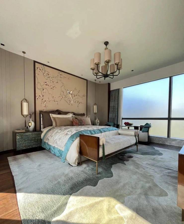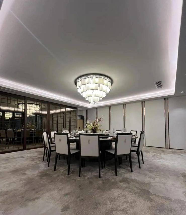 约6.9米挑高会客厅,落地玻璃的设计,在放大空间的尺度感之余,将更多白云山的自然生命力延伸进生活。室内与室外的连接与隔断、结合光影线景构筑次序空间,浪漫的表达出缓慢与轻盈的优雅生活。