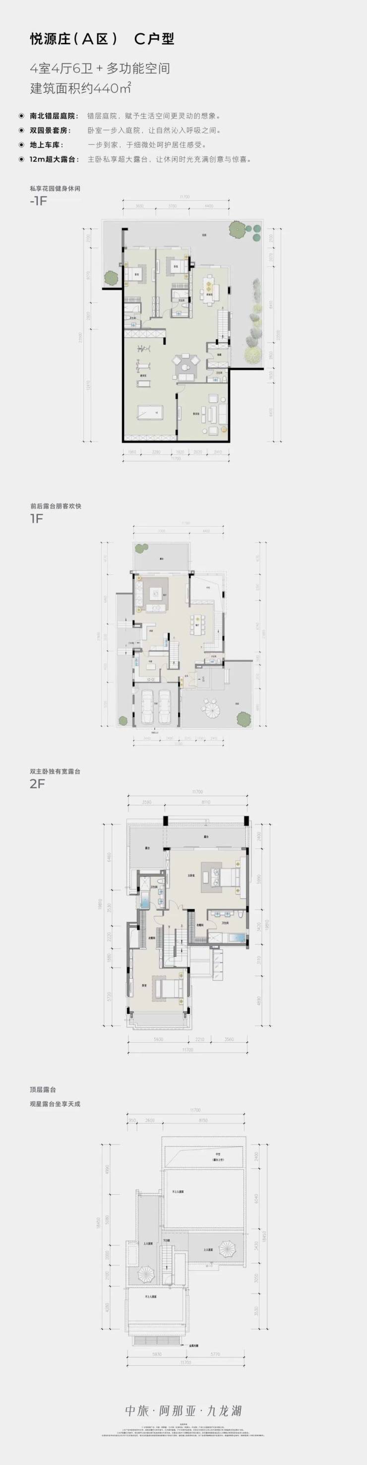 A区-C户型图(建筑面积约440㎡):