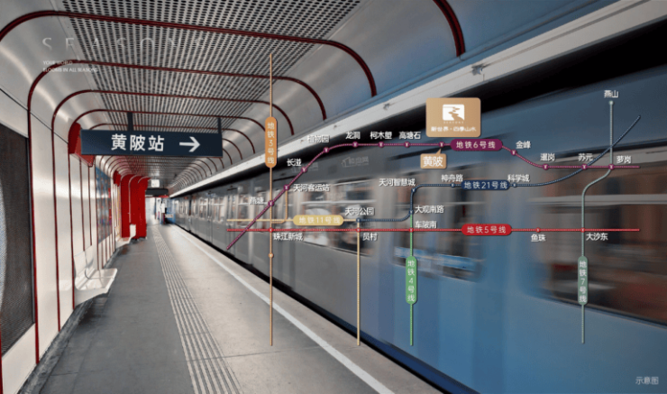 在交通基建方面,黄陂板块拥有得天独厚的优势。距离地铁口仅50米,广州地铁6号线黄陂站就位于板块核心区域,新世界四季山水与该站点近在咫尺,从小区大门步行即可到达地铁站。