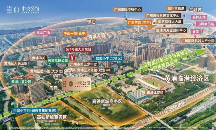 💥醇熟城市界面,配套所见即所得:中央公馆地处老黄埔旧区府中芯地段,享受成熟区域带来的现成红利。