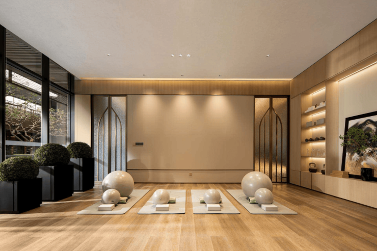 (项目下沉式会所会客厅、瑜伽室、健身房实拍)