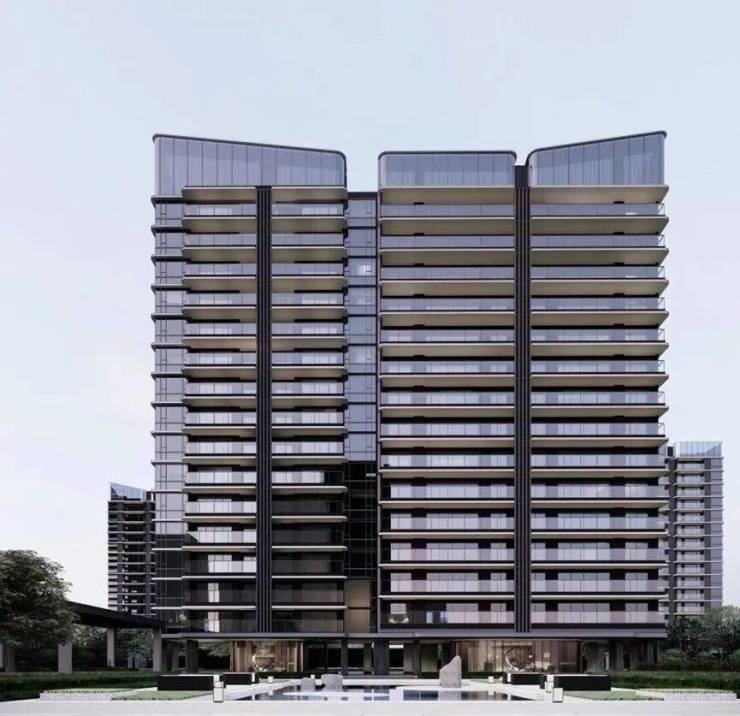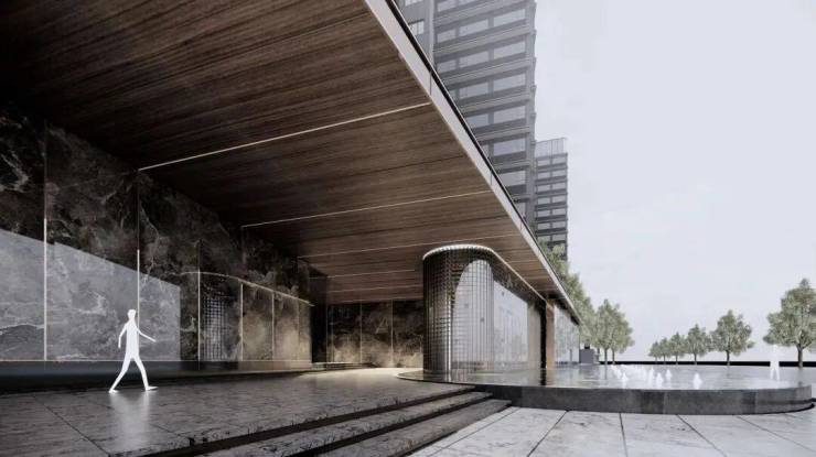 塔楼立面采用横向弧线金属设计,深灰色纵向装饰铝板强调出建筑的垂直线条以及体量感,整体勾勒出现代精工、新锐典雅的气质。大面积通透的玻璃使整个建筑轻盈而优雅,创造良好的景观视野。顶部以简单的手法,为建筑创造了丰富的形体变化,构建出沿河的标杆形象。