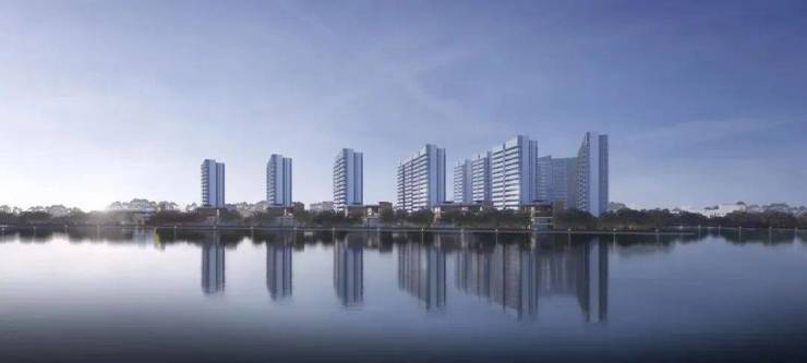 户型排布从石榴岗河自东向西依次升高,保证了约300米宽的生态水景面。