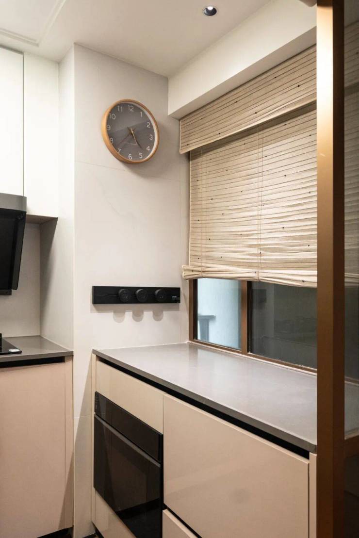 厨房采用玻璃隔断,一来增加通透性,二来也节约空间。