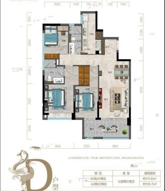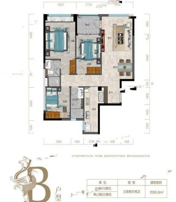 三房两厅面积主要为:75㎡ 、96㎡ 、101㎡ 、110 ㎡