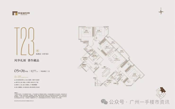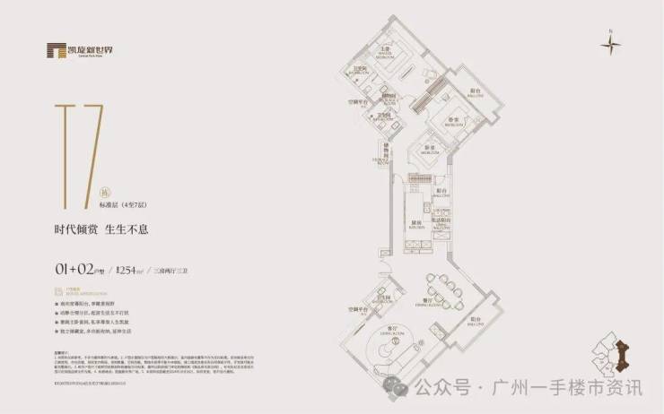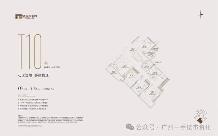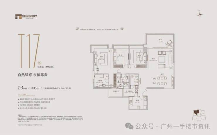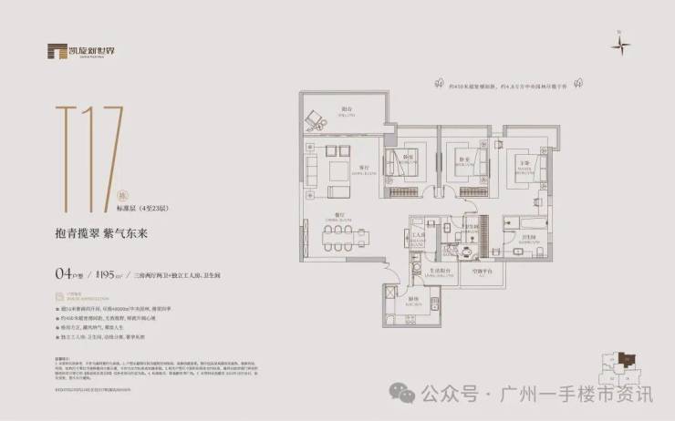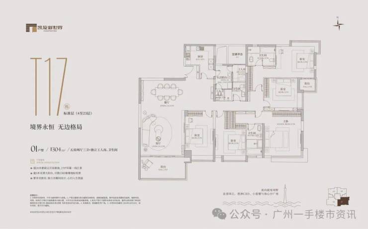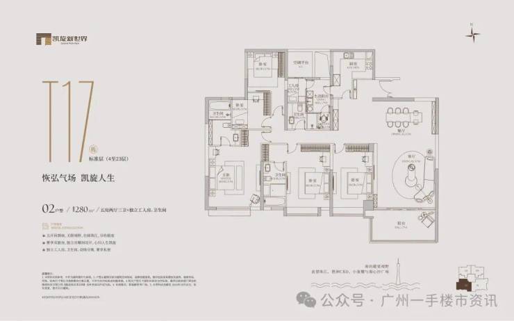 凯旋新世界三期广粤尊府将推出少量T17、T18、T21等楼栋住宅,三期T17和T18栋是广粤尊府楼王级别产品,大面积户型头排一览珠江无敌景观视野,如此顶豪可满足广州高净值人士的居住需求。