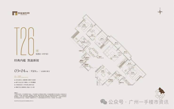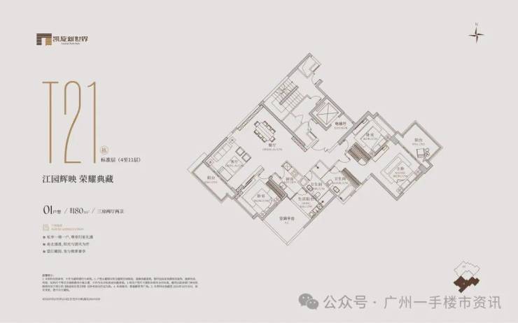 珠江新城凯旋新世界将推出项目最后的一手住宅内部保留单位,主要在售产品为三期的广粤尊府,三期可售户型涵盖北向195㎡三房、西南向173㎡、180㎡的三房和头排一线江景的245㎡、259㎡四房,以及280㎡和304㎡的五房楼王户型,三期广粤尊府住宅总共可售货量并不多。