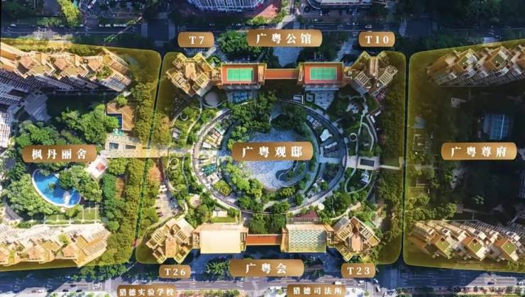 整个凯旋新世界共分三期开发,项目划分为北区、中区和南区,北区一期的枫丹丽舍建成于2005年,北向紧挨着珠江公园;中区则是二期的广粤公馆、高端商业广粤天地、顶级会所广粤会等;南区三期的广粤尊府建成于2012年,南向一线望江俯瞰广州城市地标。