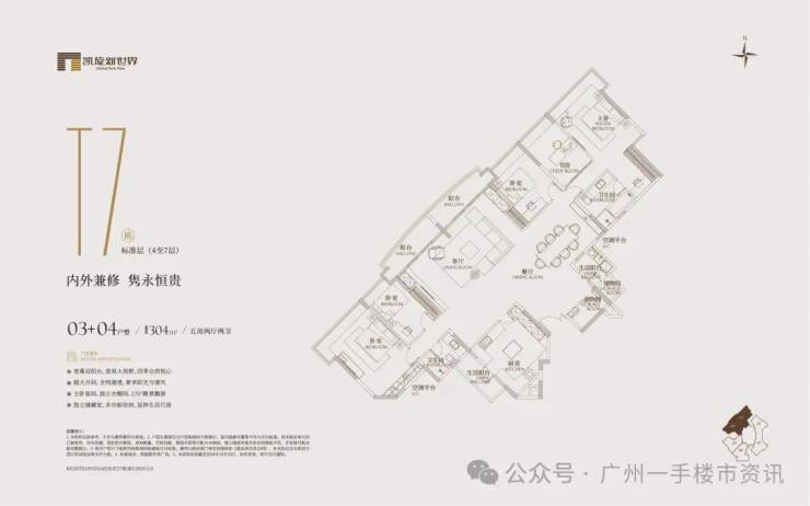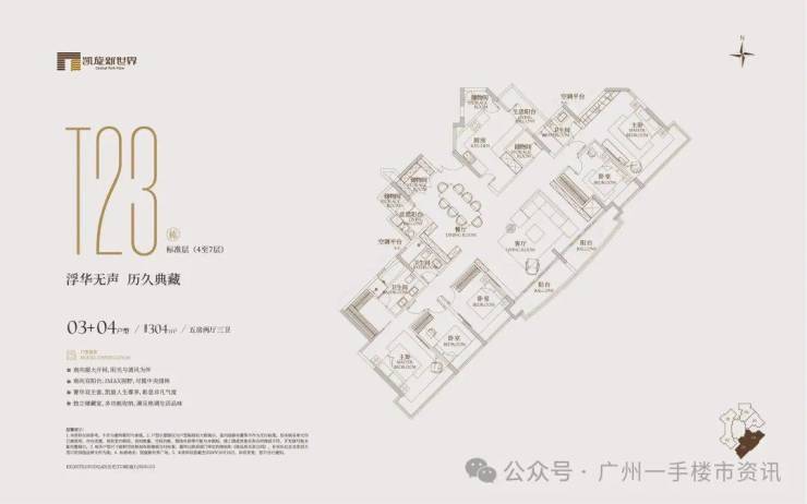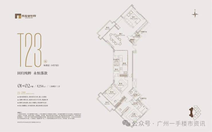 二期广粤观邸在售楼栋为T7、T10、T23、T26,可售户型涵盖132-172-254-277-304-835㎡产品(部分大面积户型全层/半层打通,双证出售),虽然二期景观比不上三期的南向江景,但可以一览凯旋新世界的超大园林景观,同时这也意味着新世界地产将全面清货退场。