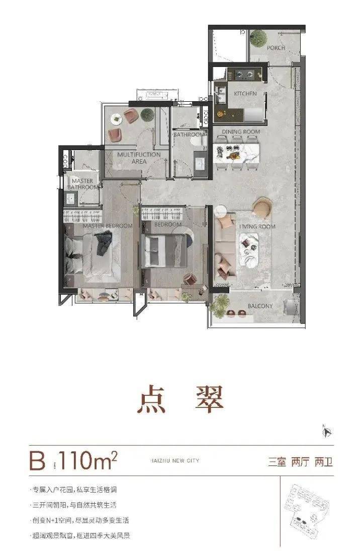 珠光·海珠新城推出了一系列高实用率户型,覆盖110㎡-230㎡的改善型住宅,产品设计讲究空间利用率,部分户型更享一线江景+公园景观。