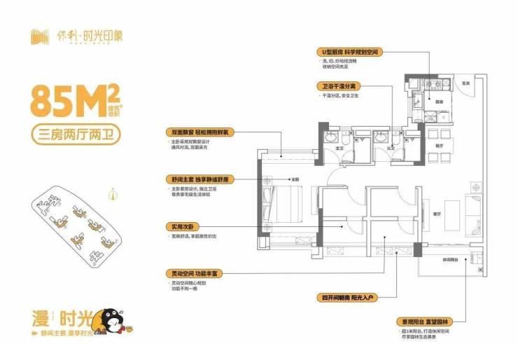 【85-86㎡三房两卫-四开间朝南】