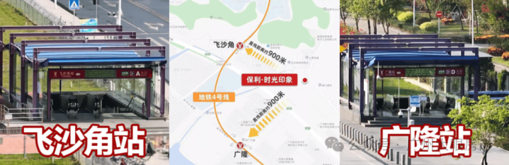 地铁:距离飞沙角/广隆地铁站直线距离900多米,家门口双地铁站,一站到金州,两站到蕉门换乘22号线接驳3/18号线,连接庆盛枢纽,约50分钟到琶洲/金融城CBD,未来规划4条地铁线汇聚(4号线/15/22/38号线)