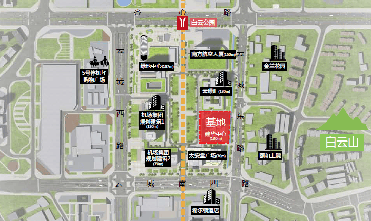 白云新城作为广州市重要的城市副中心,引进了众多具有影响力的企业,力图打造成对标珠江新城的广州RBD(休闲商务区)。项目位于其中的核心地段,紧邻由原机场主跑道改造而成、贯穿南北的中央公园,东望白云山风景,西抵机场高速,北观白云公园,南眺广州地标广州塔,地理及景观条件优异。