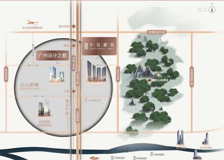 白云的发展,有着一条清晰的脉络,以三元里为起点,白云新城—设计之都—白云机场,一路沿空港大道黄金中轴北上。空港大道全长18.3公里,串联起白云新城南总部集聚区、广州设计之都,空港经济区等重点功能片区。中海麓府,位于空港大道旁,近享黄金中轴价值潜力,见证白云蝶变。