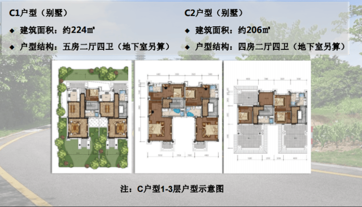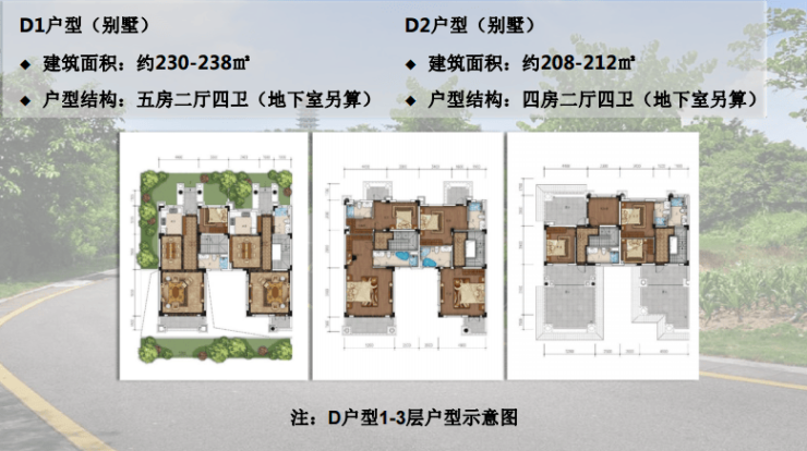 联排别墅赠送花园94-450m²,地下室85-130m²。