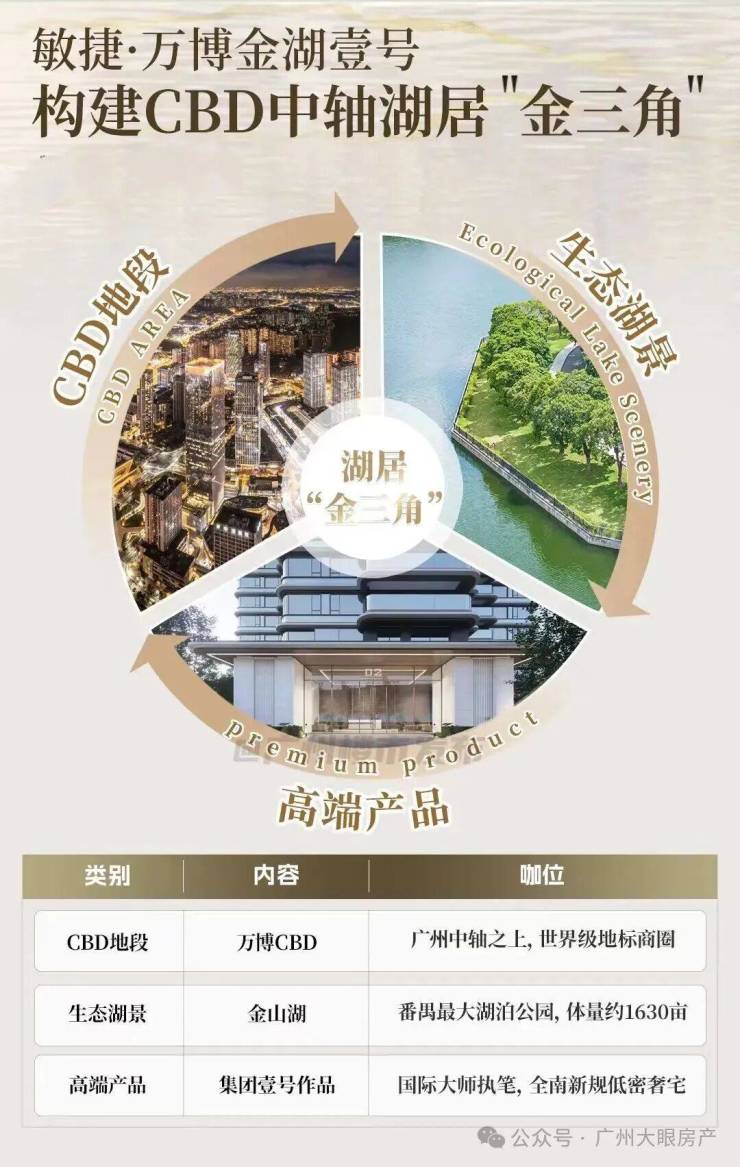 它身处万博CBD,更紧邻番禺最大湖泊——金山湖,在多维度让人看到万博版“香蜜湖”的影子,绝对是番禺值得期待的全新盘。