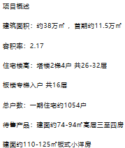【项目规模】总建面约38万㎡,首期约11.5万㎡