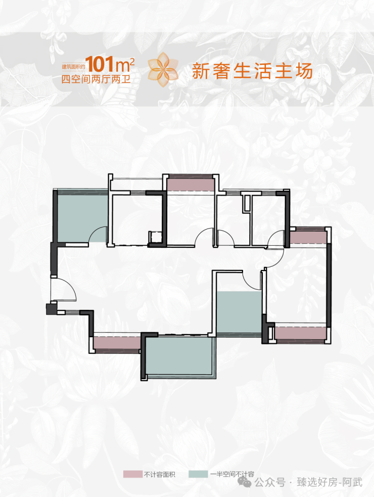 项目细节感受完之后,户型方面也有惊喜,建面约101-102㎡的四空间做了横厅和竖厅两种格局,每一款都经过精心打磨,满足不同家庭的需求: