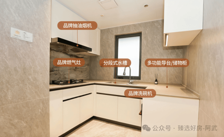 全屋高配交标,配套品牌家具:抽油烟机、燃气灶、洗碗机,厨房设有凉霸、多功能导台,主卧设有暖霸,为业主提供冬暖夏凉的体验。(交付标准及空间尺寸以双方最终签订的商品房买卖合同约定为准。)