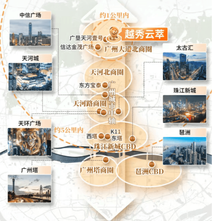 5公里范围内就是东方宝泰、天河城、天环、太古汇等世界级商圈。