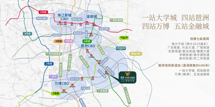 自驾方面也是很方便的,南大干线已经开通,串联起广州南站、汉溪长隆、万博CBD、大学城、国际创新城、广汽基地等番禺核心板块,5min直达万博中心;