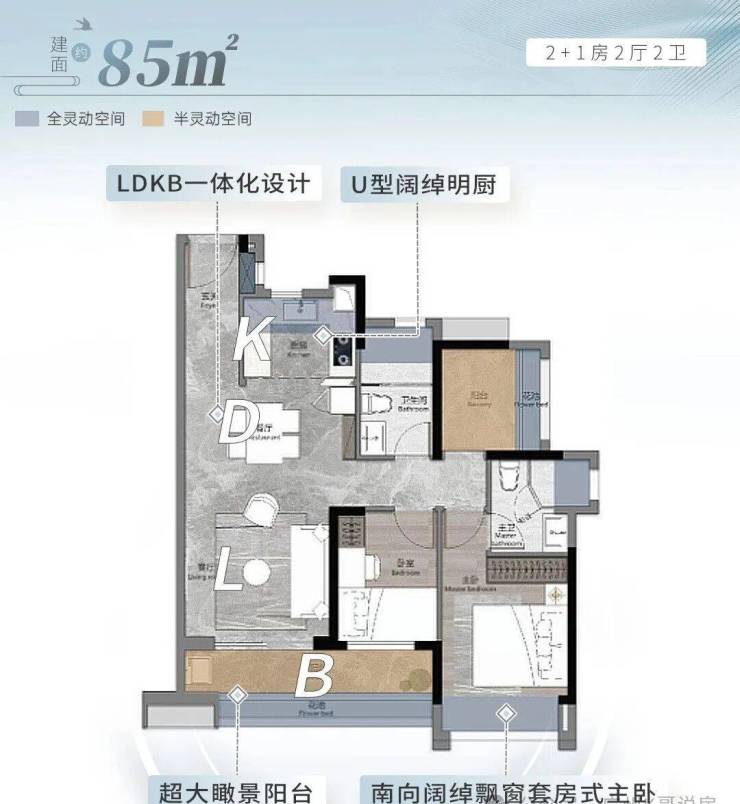 南向超大观景阳台,阔绰瞰景阳台,U型明厨,宽绰餐厨,盛载三餐四季