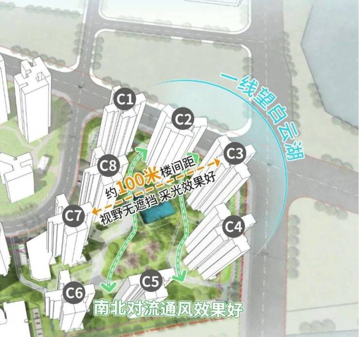 另一方面,三期组团与白云湖区不到100米,还是全南向设计,在整个白云湖板块,亲水性和景观性最好。