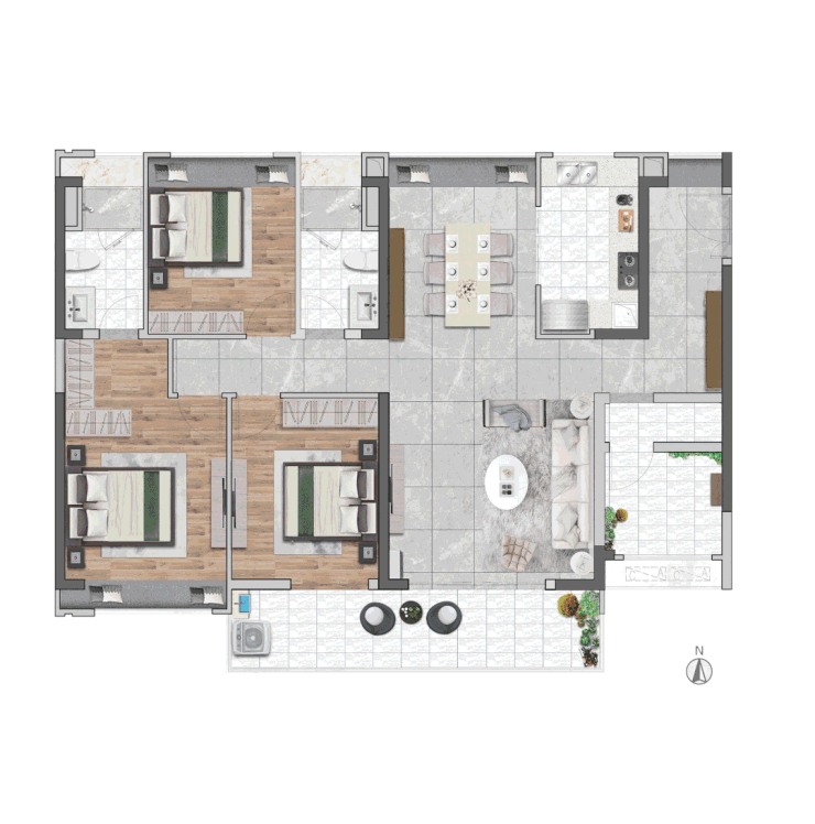 这次示范区展示建面约140㎡3+1房户型,力求优质舒适的居住感受,以三房的进阶实现三代同堂。