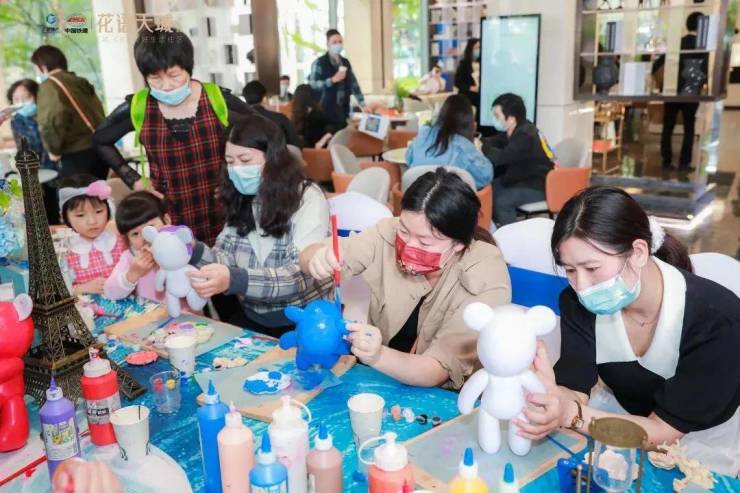 网红熊彩绘DIY,结合公仔熊酷帅的个性,将治愈和艺术完美结合,独一无二的潮玩吸引了来访者的无数目光。