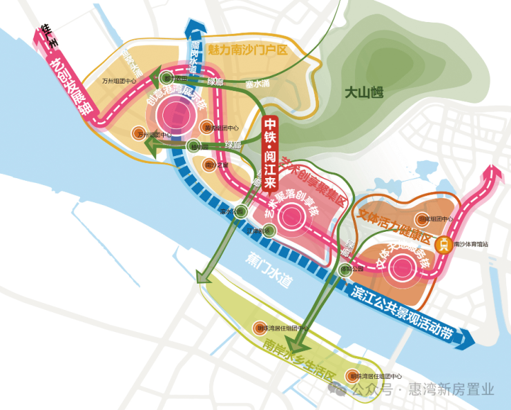 项目东北侧有大山乸森林公园,西侧就是约600米宽蕉门水道,一桥之隔则是南沙未来灵山岛CBD。